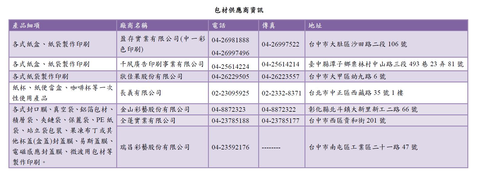 A:田義尚無提供此服務,僅供《包材聯絡資訊》,可自行洽詢。