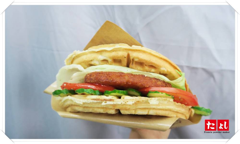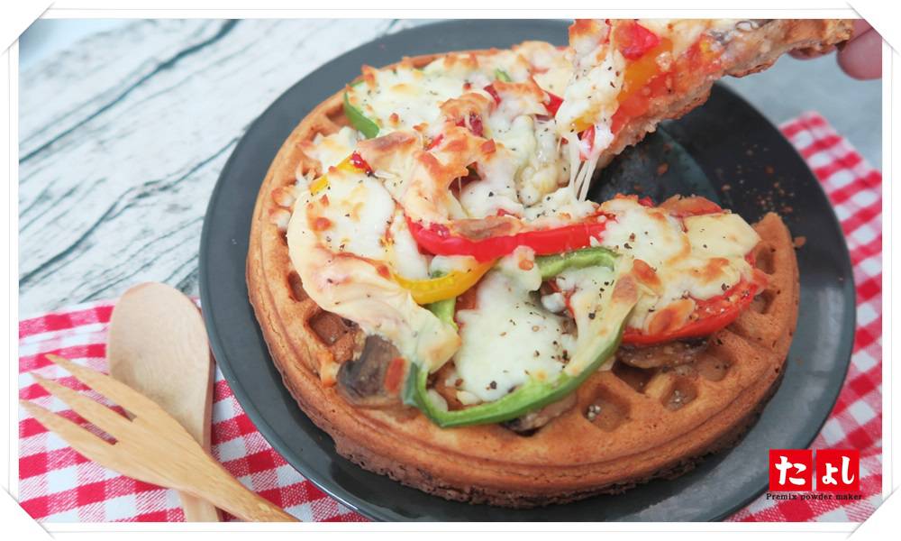 使用【家用直立式鬆餅機台】機台預熱完後倒入麵糊,烤焙完成後取出,送入烤箱烤焙,溫度200℃,時間3分鐘,口感更酥脆
