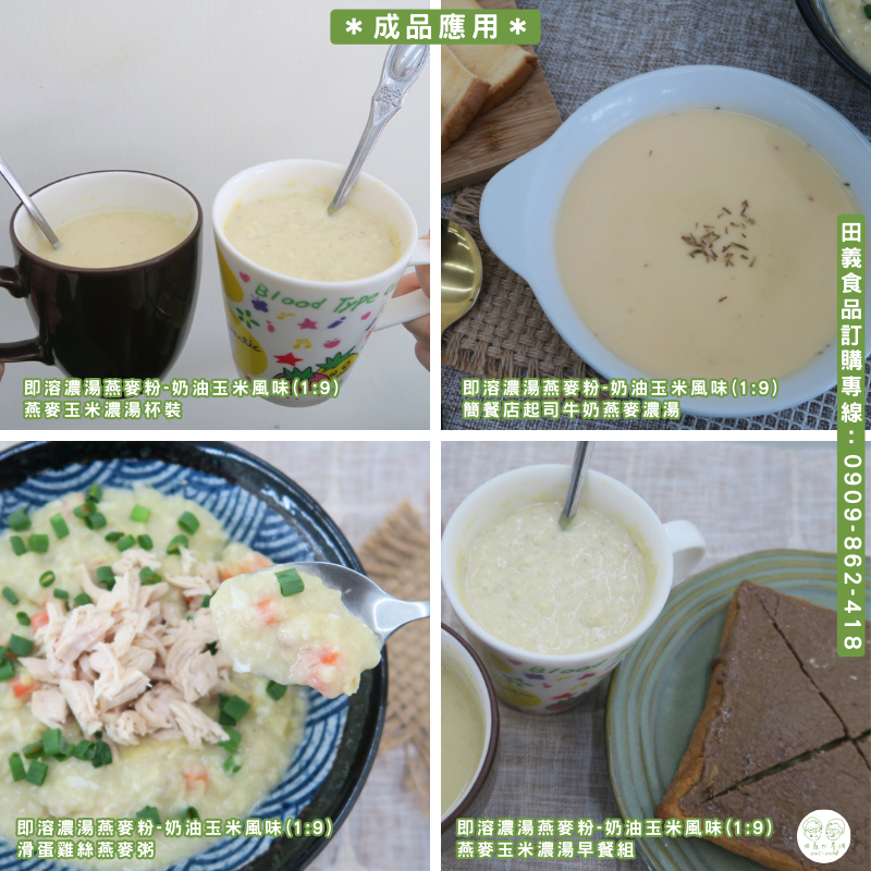 燕麥粉、羥丙基磷酸二澱粉、甜玉米粉、全脂奶粉、棕櫚油粉末(精製棕櫚油、麥芽糊精、辛烯基丁二酸鈉澱粉、脂肪酸甘油酯(植物性)、二氧化矽、香料、混合濃縮生育醇)、味精、小麥澱粉、鹽粉、香料、香蒜粉(蒜粉、二氧化矽)、酵母精粉(酵母萃取物、鹽)、黑胡椒粉、二氧化矽、干貝素、呈味核甘酸二鈉(5'-鳥嘌呤核苷磷酸二鈉、5'-次黃嘌呤核苷磷酸二鈉)、胺基乙酸、β-胡蘿蔔素(葵花籽油、阿拉伯膠、麥芽糊精、水、蔗糖、β-胡蘿蔔素、L-抗壞血酸棕櫚酸酯、生育醇濃縮物)、胺基丙酸(*本產品含有麩質及牛奶製品過敏原)