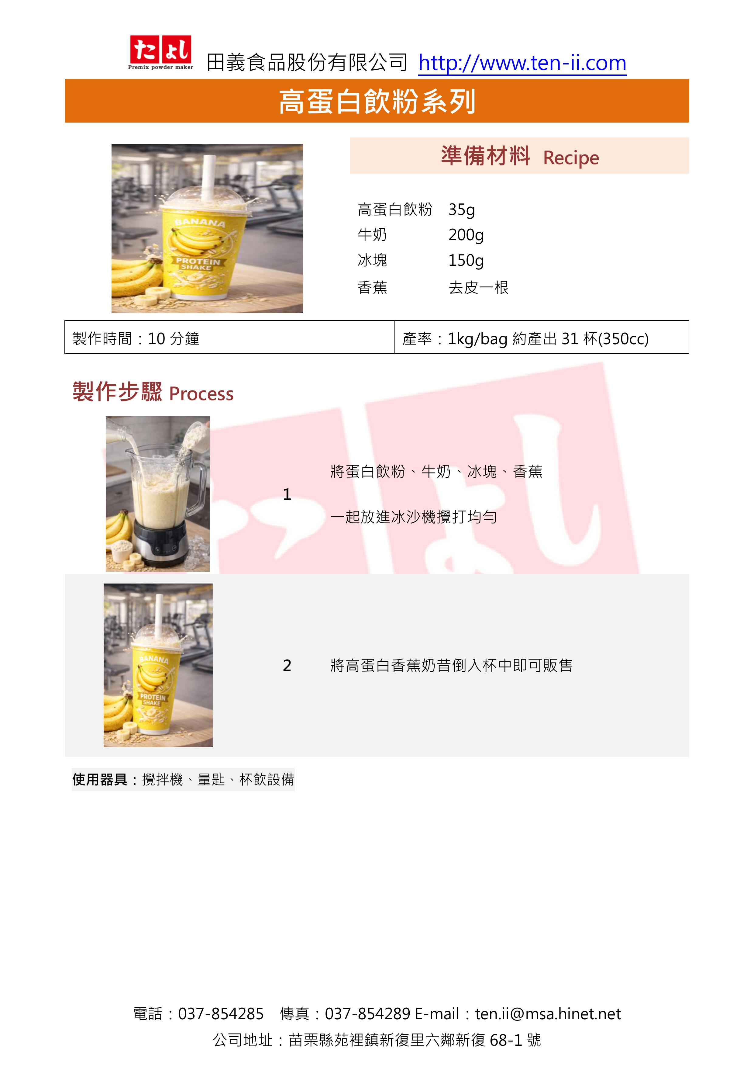 * 鮮奶可更換成其他牛奶產品,例如:羊奶、植物奶…等,依選擇的牛奶不同,可變化出不同風味、稠度的乳清蛋白飲品。