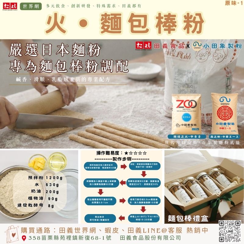 1.烤焙時間需依照烤箱大小、麵包棒粗細/大小做調整。