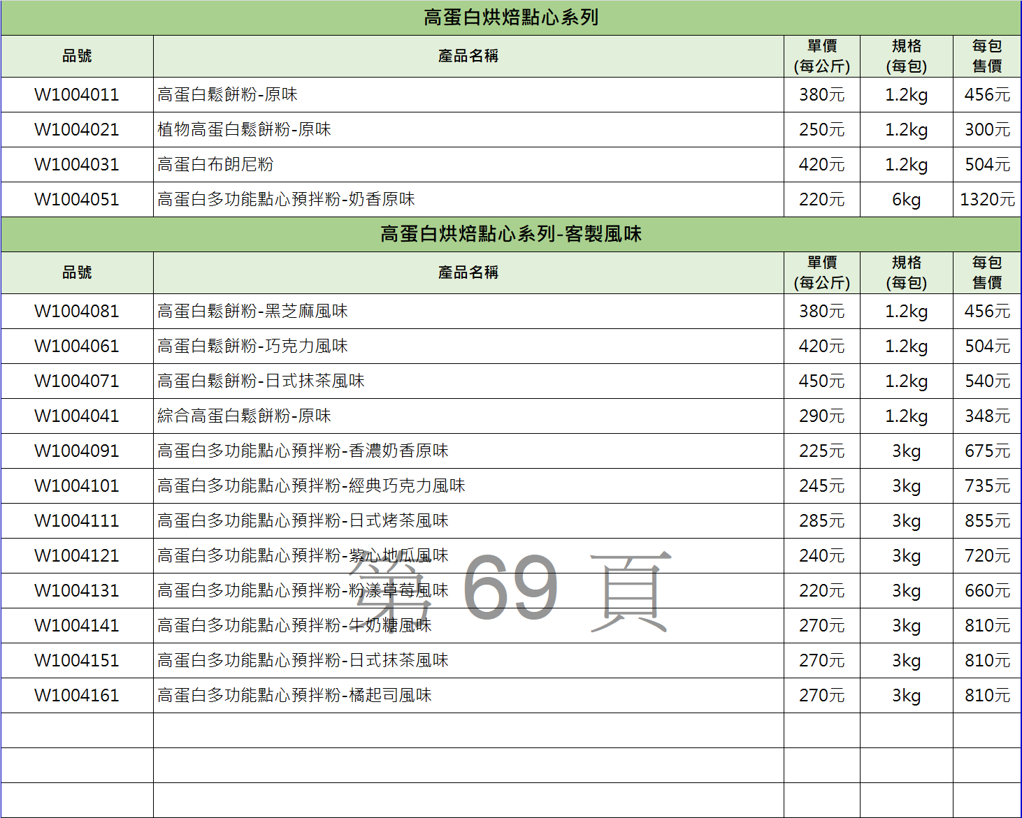 高蛋白烘焙點心系列目錄