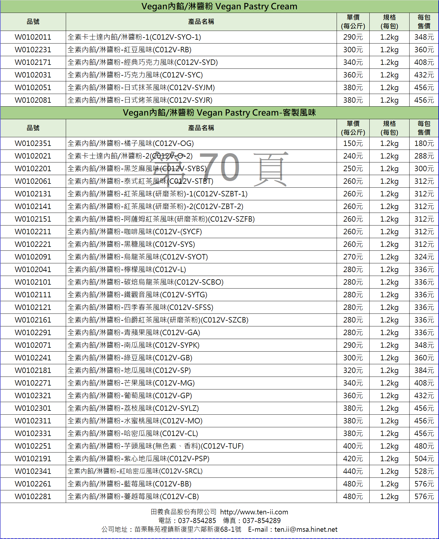 Vegan內餡/淋醬粉系列目錄
