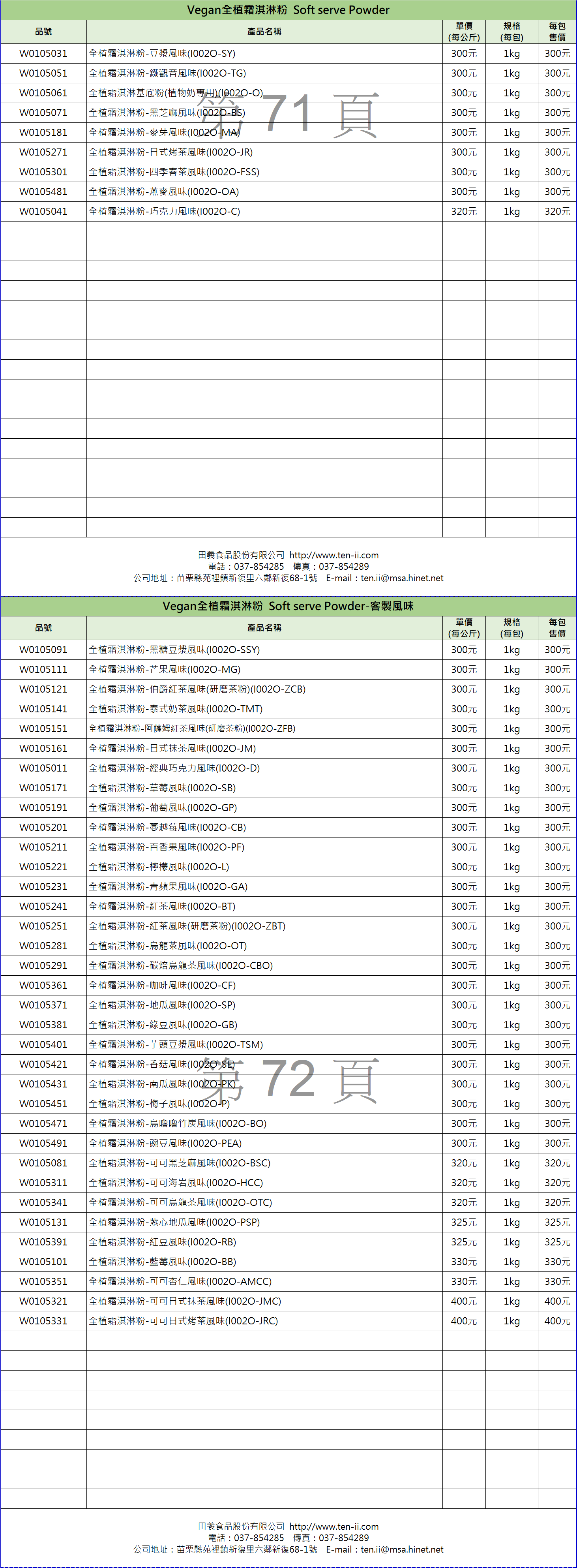 Vegan全植霜淇淋粉系列目錄