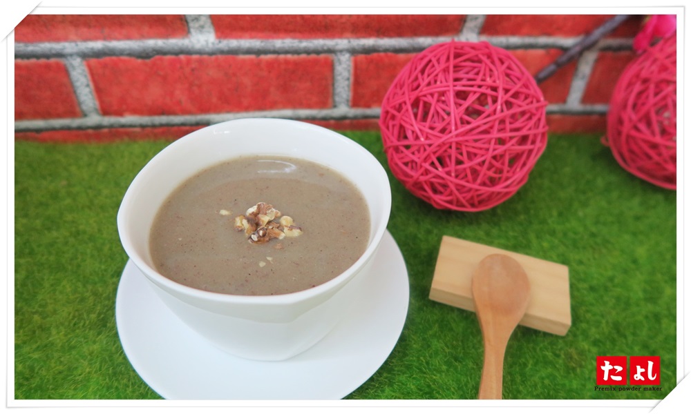 57號黃金地瓜粉、糖粉、紅豆粉、羥丙基磷酸二澱粉、椰漿粉(椰奶、麥芽糊精、乾酪素鈉)、海藻糖、預糊化澱粉、黑芝麻粉、鹽粉、椰子油粉(精製椰子油、麥芽糊精、辛烯基丁二酸鈉澱粉、脂肪酸甘油酯(植物性)、二氧化矽、香料(葡萄糖、香料、二氧化矽)、混合濃縮生育醇(抗氧化劑))、刺槐豆膠(*本產品含有牛奶、芝麻及堅果製品過敏原)