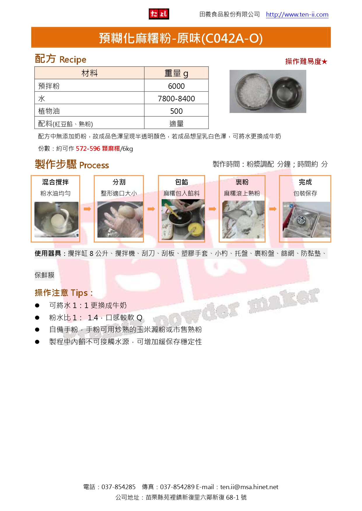 *預糊化麻糬因使用熟化澱粉調配,區別於傳統麻糬需經過蒸煉製程