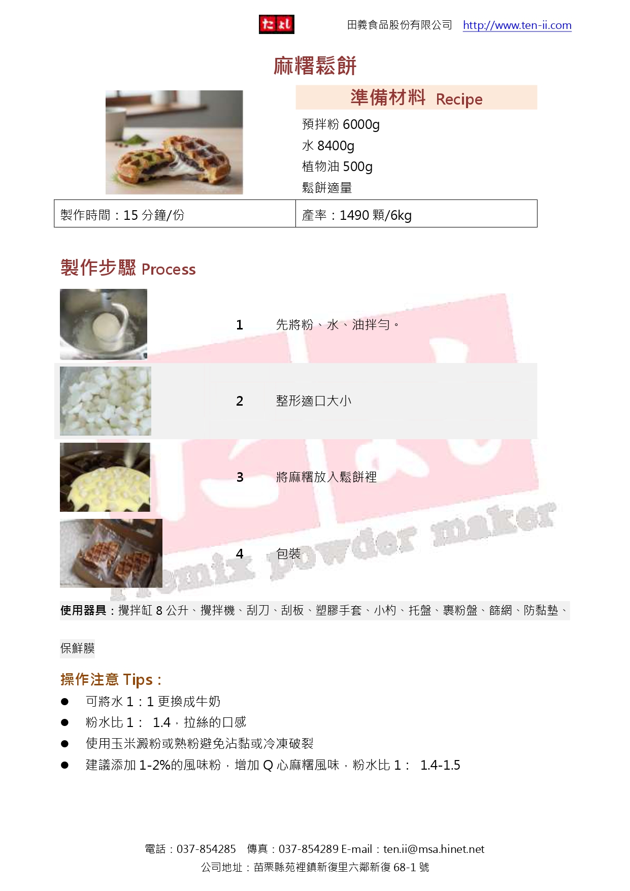方法一:預拌粉1200g、水1560-1680g、植物油100cc