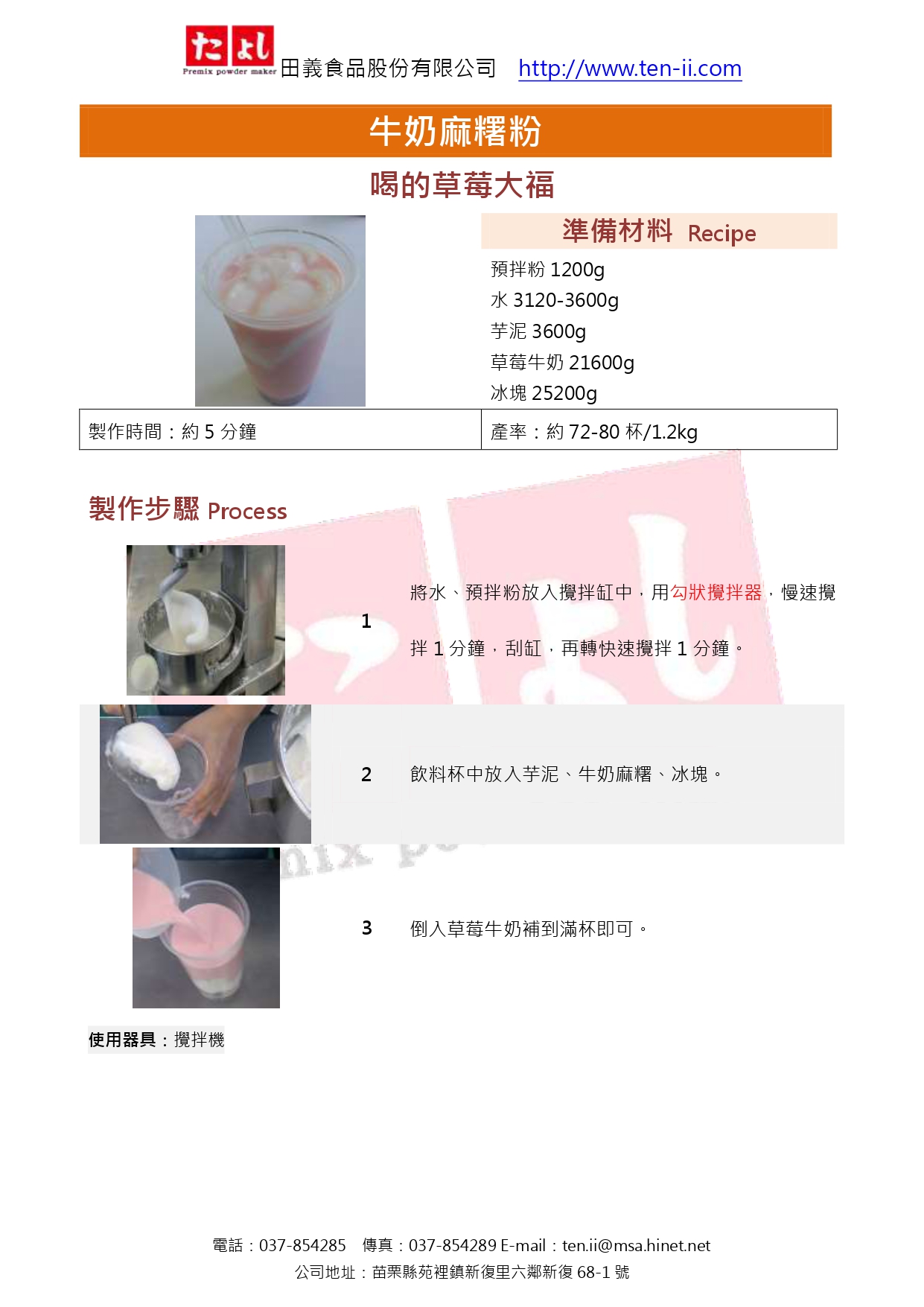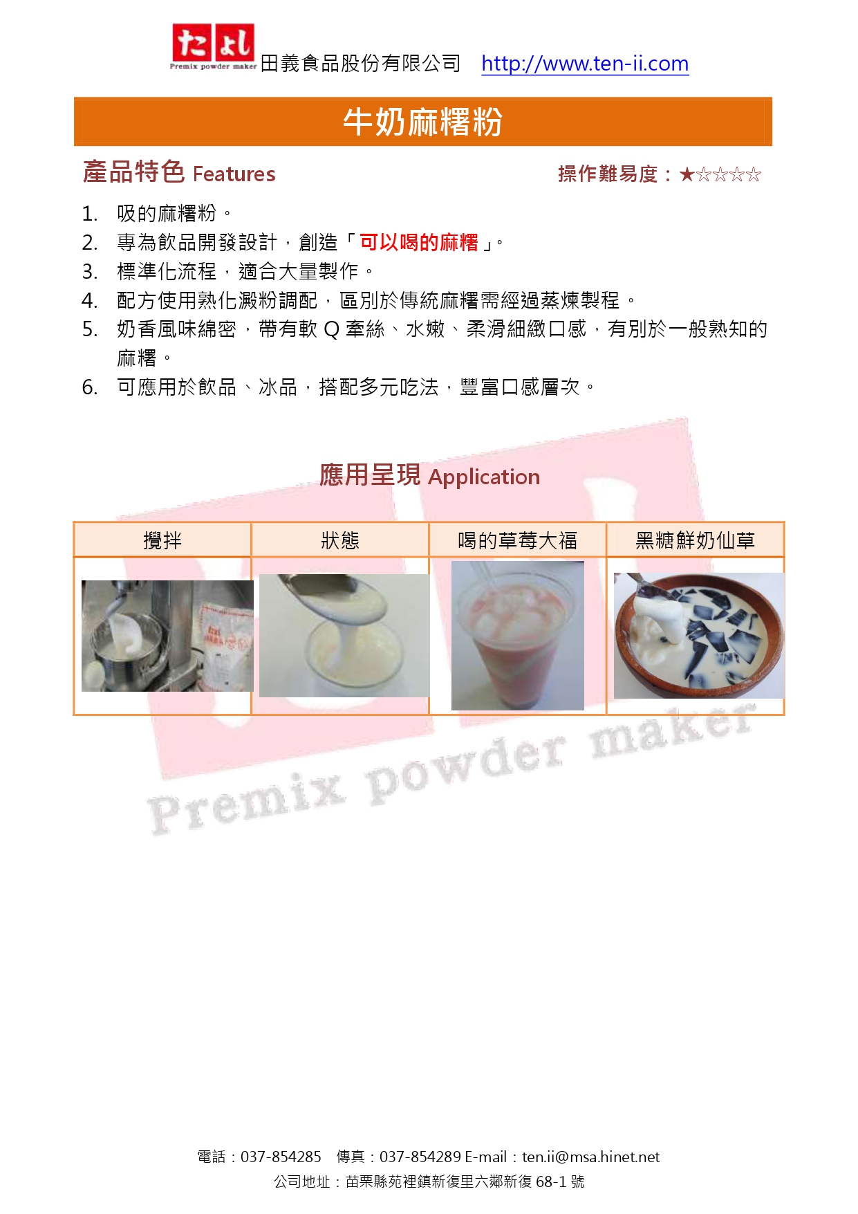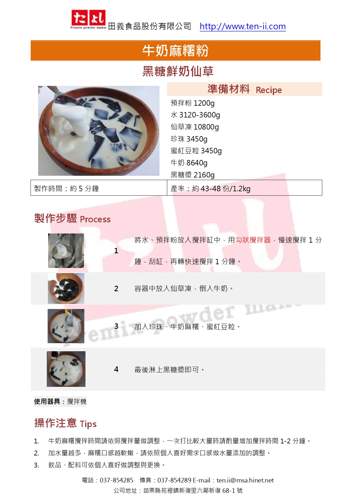 2. 加水量越多,麻糬口感越軟嫩,請依照個人喜好需求口感做水量添加的調整。